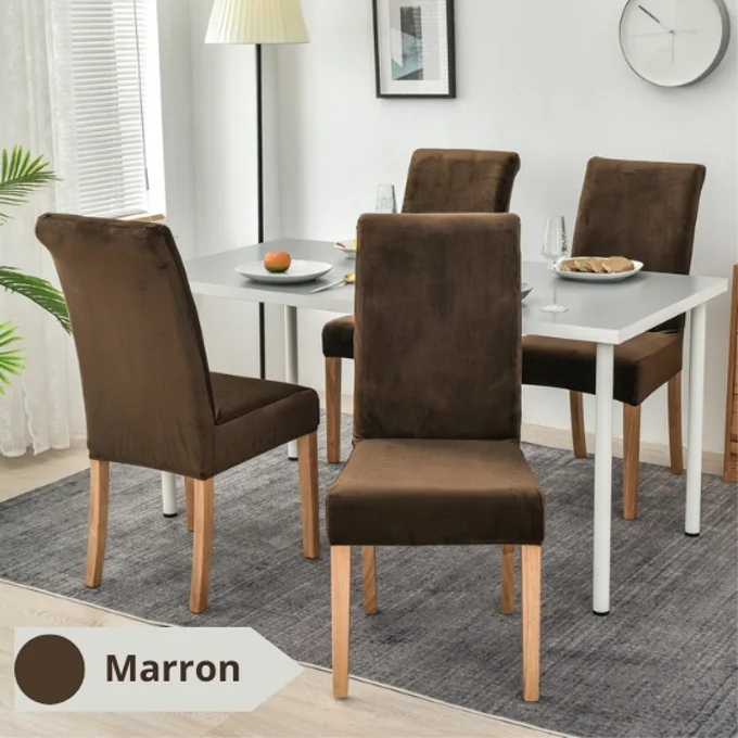 Une housse de chaise en velours élastique offre à la fois élégance et praticité. Le velours apporte une touche de luxe, tandis que l'élasticité permet un ajustement parfait sur différentes tailles de chaises. Elle protège également vos chaises des taches et de l'usure quotidienne tout en ajoutant une note de sophistication à votre décor.